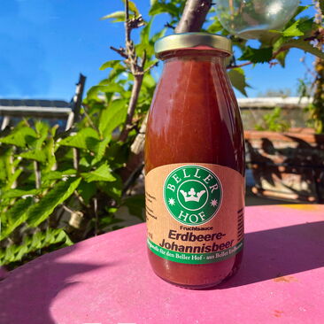 Extra für den Beller Hof aus eigenen Beller Erdbeeren mit Johannisbeeren hergestellt.
